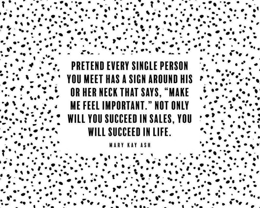 Mary Kay Ash Quote: Make Me Feel Important White Modern Wood Framed Art Print with Double Matting by ArtsyQuotes