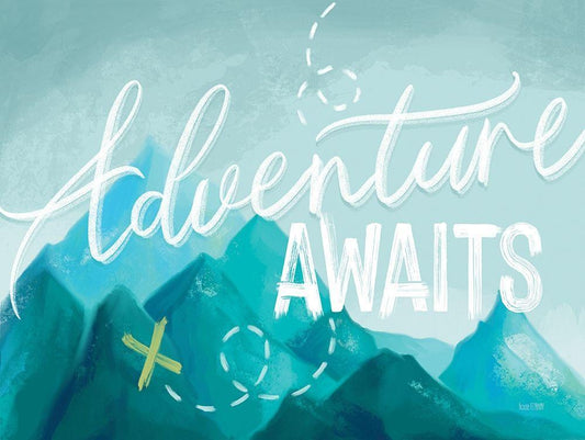 Adventure Awaits II White Modern Wood Framed Art Print with Double Matting by House Fenway
