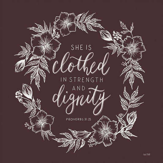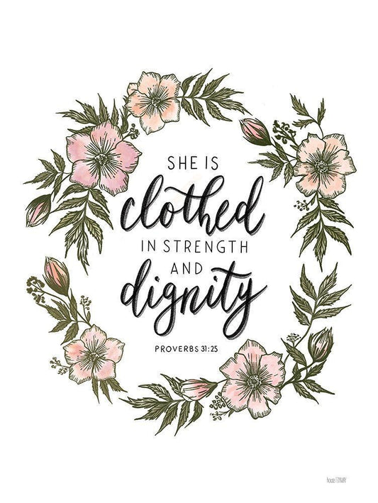 Floral She is Clothed White Modern Wood Framed Art Print with Double Matting by House Fenway