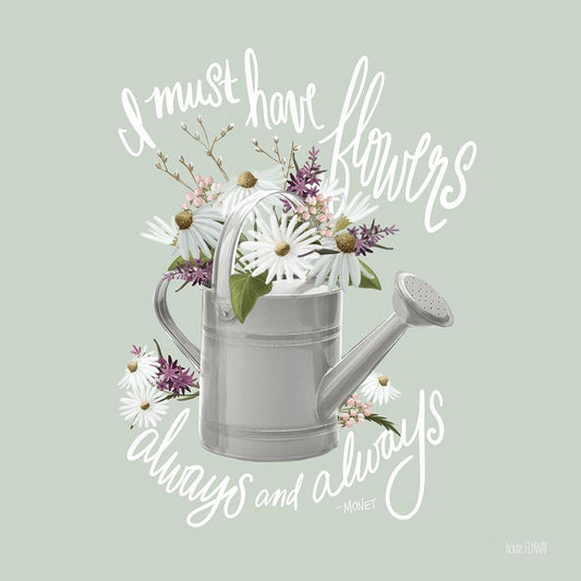 Farmhouse Watering Can White Modern Wood Framed Art Print with Double Matting by House Fenway