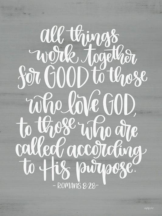 Romans 8:28 White Modern Wood Framed Art Print with Double Matting by Imperfect Dust