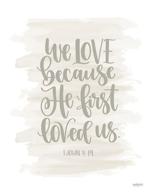 We Love Because He First Loved Us White Modern Wood Framed Art Print with Double Matting by Imperfect Dust