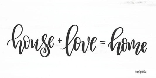 House + Love = Home White Modern Wood Framed Art Print with Double Matting by Imperfect Dust