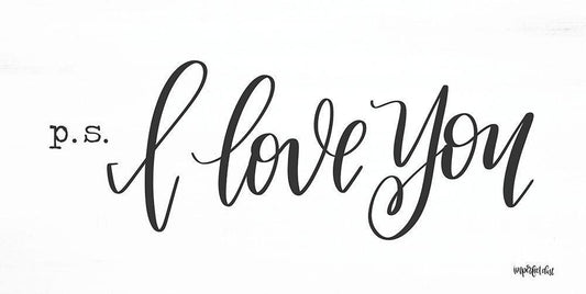 P.S. I Love You White Modern Wood Framed Art Print with Double Matting by Imperfect Dust