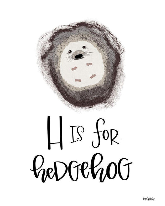 H is for Hedgehog White Modern Wood Framed Art Print with Double Matting by Imperfect Dust