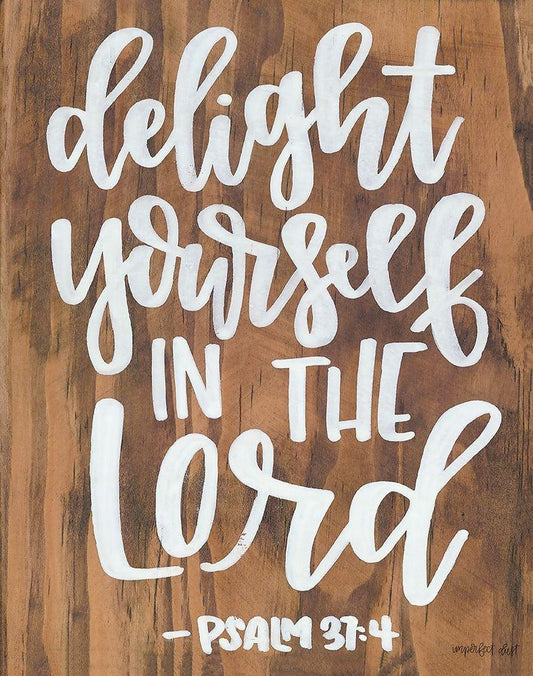 Delight Yourself in the Lord White Modern Wood Framed Art Print with Double Matting by Imperfect Dust