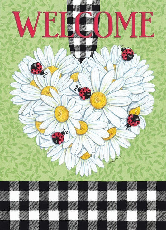 Daisy Heart And Ladybugs White Modern Wood Framed Art Print with Double Matting by Strain, Deb