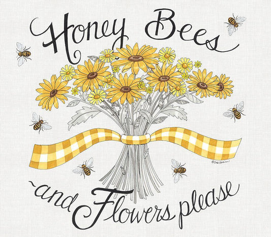 Honey Bees and Flowers Please White Modern Wood Framed Art Print with Double Matting by Strain, Deb