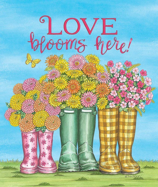 Love Blooms Here Wellies White Modern Wood Framed Art Print with Double Matting by Strain, Deb