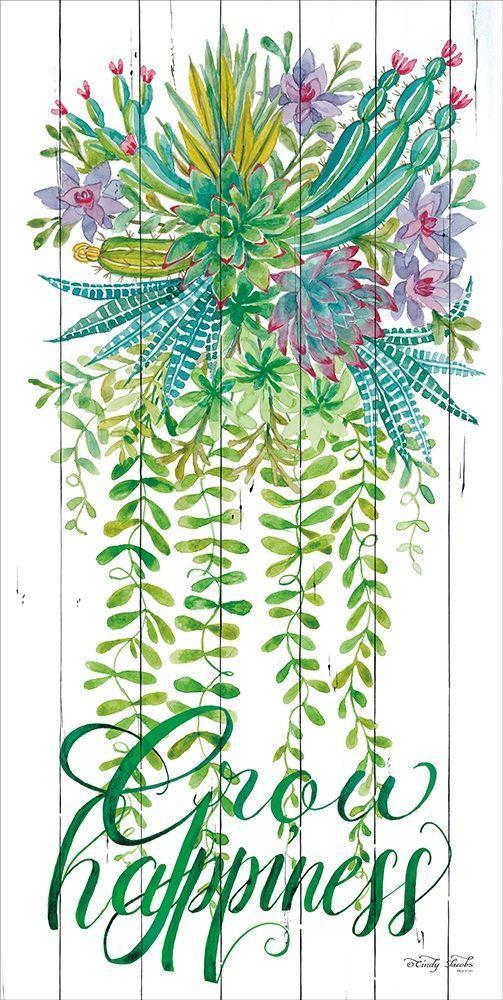 Grow Happiness White Modern Wood Framed Art Print with Double Matting by Jacobs, Cindy