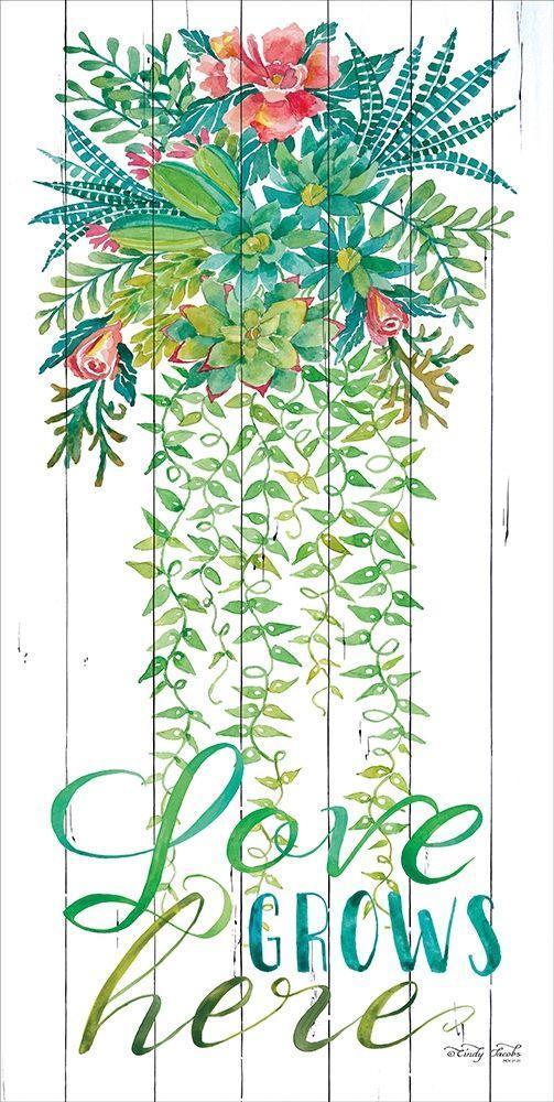 Love Grows Here White Modern Wood Framed Art Print with Double Matting by Jacobs, Cindy