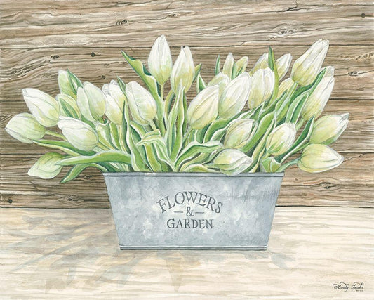 Flowers and Garden Tulips White Modern Wood Framed Art Print with Double Matting by Jacobs, Cindy