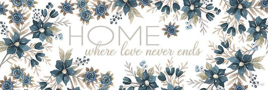 HOME - Where Love Never Ends White Modern Wood Framed Art Print with Double Matting by Jacobs, Cindy