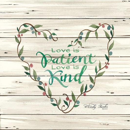 Love is Patient Heart Wreath White Modern Wood Framed Art Print with Double Matting by Jacobs, Cindy