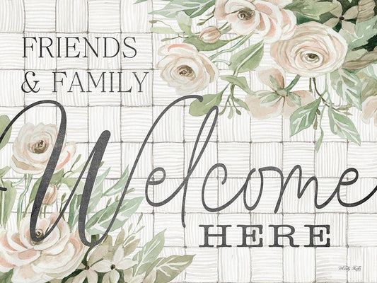 Friends and Family Welcome Here White Modern Wood Framed Art Print with Double Matting by Jacobs, Cindy