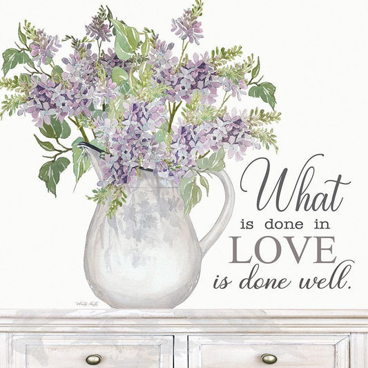 What is Done in Love White Modern Wood Framed Art Print with Double Matting by Jacobs, Cindy