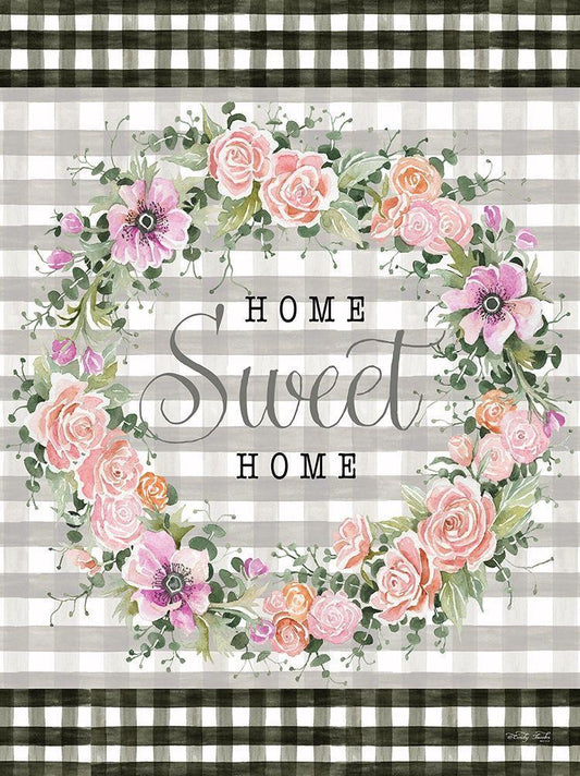 Home Sweet Home Gingham White Modern Wood Framed Art Print with Double Matting by Jacobs, Cindy