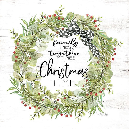 Christmas Time Wreath White Modern Wood Framed Art Print with Double Matting by Jacobs, Cindy