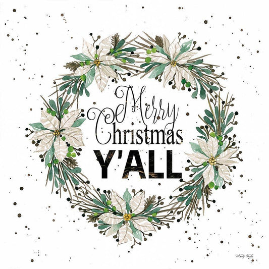 Merry Christmas Yall Wreath White Modern Wood Framed Art Print with Double Matting by Jacobs, Cindy
