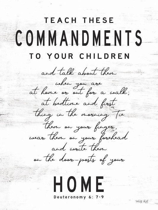 Teach These Commandments White Modern Wood Framed Art Print with Double Matting by Jacobs, Cindy