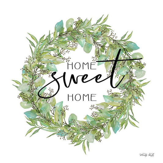 Home Sweet Home Wreath I White Modern Wood Framed Art Print with Double Matting by Jacobs, Cindy