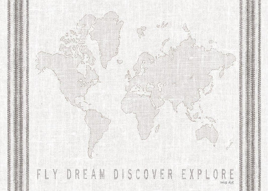 Fly, Dream, Discover, Explore Map White Modern Wood Framed Art Print with Double Matting by Jacobs, Cindy