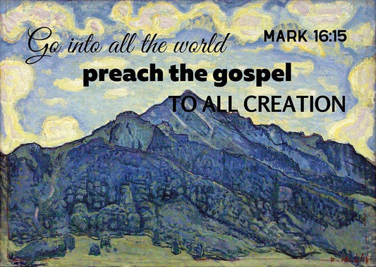 Bible Verse Quote Mark 16:15, Ferdinand Hodler - Landscape in the Swiss Alps White Modern Wood Framed Art Print with Double Matting by ArtsyQuotes