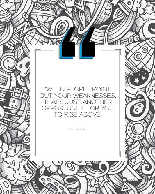 Zac Efron Quote: Weakness White Modern Wood Framed Art Print with Double Matting by ArtsyQuotes