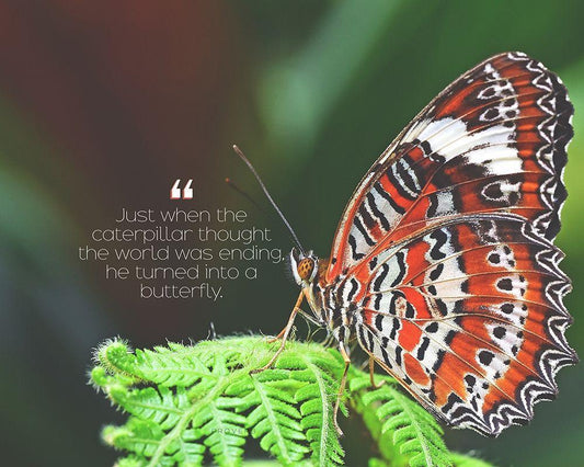 Artsy Quotes Quote: Turned into a Butterfly White Modern Wood Framed Art Print with Double Matting by ArtsyQuotes