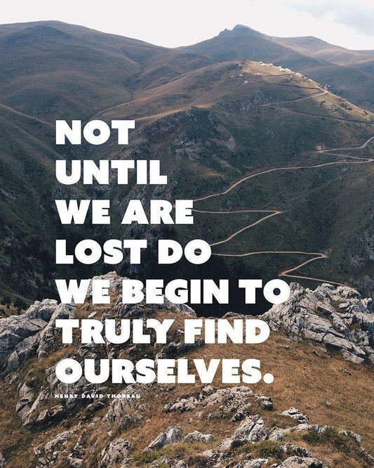 Henry David Thoreau Quote: Truly Find Ourselves White Modern Wood Framed Art Print with Double Matting by ArtsyQuotes
