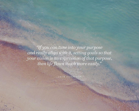 Jack Canfield Quote: Tune into Your Purpose White Modern Wood Framed Art Print with Double Matting by ArtsyQuotes
