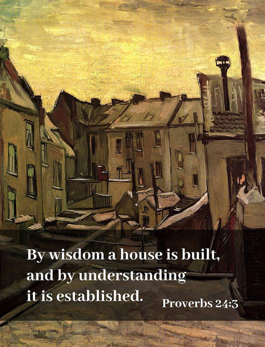 Bible Verse Quote Proverbs 24:3, Vincent van Gogh - Backyards of Old Houses in Antwerp in the Snow White Modern Wood Framed Art Print with Double Matting by ArtsyQuotes