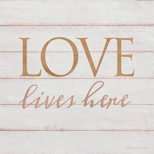 Love Lives Here White Modern Wood Framed Art Print with Double Matting by Bluebird Barn
