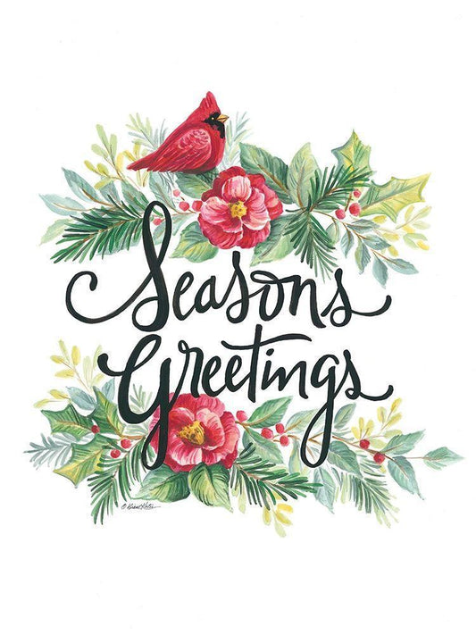 Seasons Greetings Wreath White Modern Wood Framed Art Print with Double Matting by Arthurs, Diane
