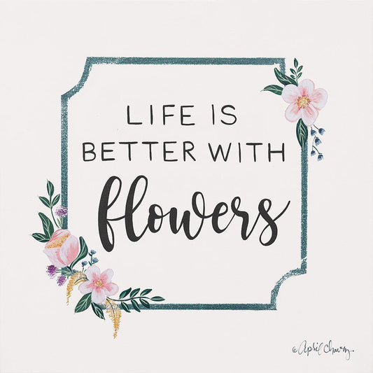 Life is Better with Flowers White Modern Wood Framed Art Print with Double Matting by Chavez, April
