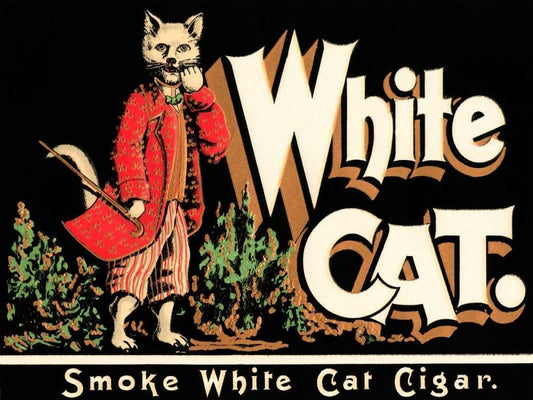 White Cat Brand Cigars White Modern Wood Framed Art Print with Double Matting by Vintage Booze Labels