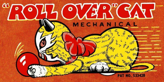 Roll Over Cat White Modern Wood Framed Art Print with Double Matting by Retrobot