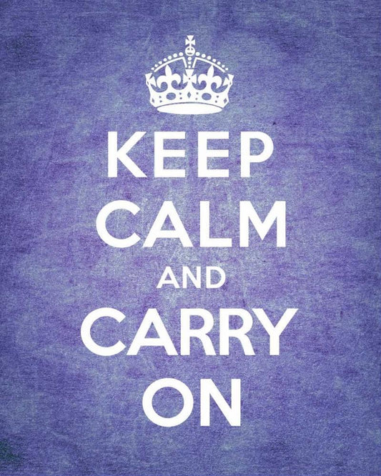 Keep Calm and Carry On - Vintage Purple White Modern Wood Framed Art Print with Double Matting by The British Ministry of Information