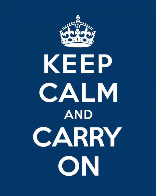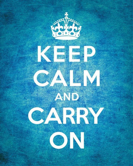 Keep Calm and Carry On - Blue White Modern Wood Framed Art Print with Double Matting by The British Ministry of Information