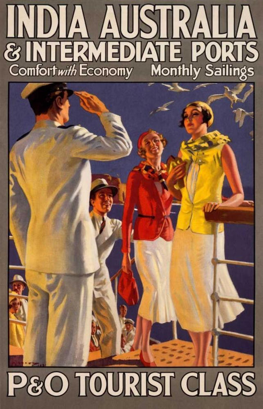 India Australia and Intermediate Ports/P and O White Modern Wood Framed Art Print with Double Matting by Michael