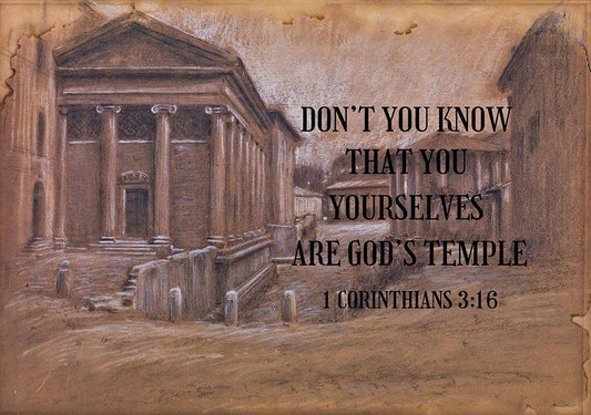 Bible Verse Quote 1 Corinthians 3:16, Adolf Hir - View of the Forum Boarium White Modern Wood Framed Art Print with Double Matting by ArtsyQuotes