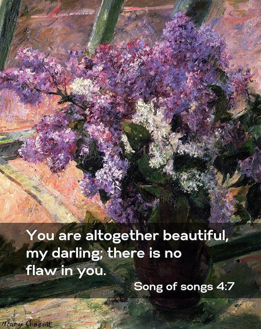 Bible Verse Quote Song of Songs 4:7, Mary Cassatt - Lilacs in a Window White Modern Wood Framed Art Print with Double Matting by ArtsyQuotes