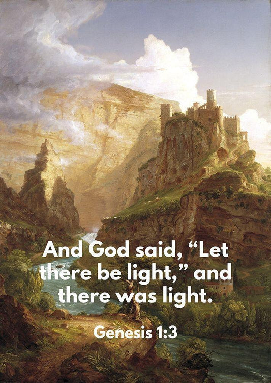 Bible Verse Quote Genesis 1:3, Thomas Cole - The Fountain of Vaucluse White Modern Wood Framed Art Print with Double Matting by ArtsyQuotes