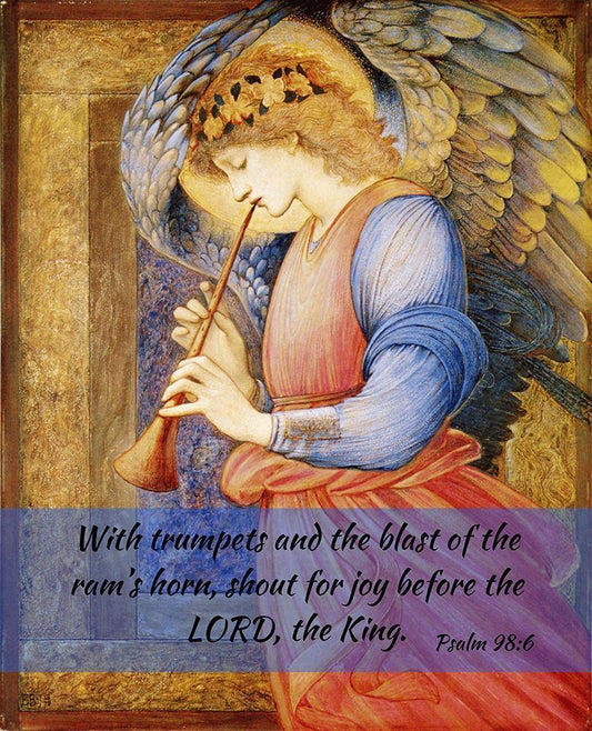 Bible Verse Quote Psalm 98:6, Edward Burne Jones - An Angel Playing a Flageloet 2 White Modern Wood Framed Art Print with Double Matting by ArtsyQuotes