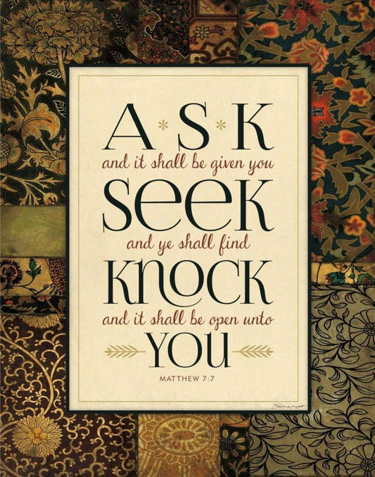Ask Seek Knock White Modern Wood Framed Art Print with Double Matting by Marrott, Stephanie