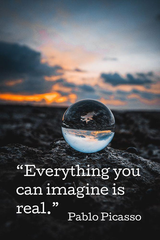 Pablo Picasso Quote: Imagine White Modern Wood Framed Art Print with Double Matting by ArtsyQuotes