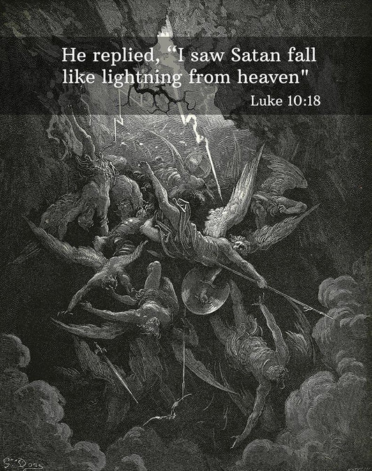 Bible Verse Quote Luke 10:18, Gustave Dore - The Mouth of Hell White Modern Wood Framed Art Print with Double Matting by ArtsyQuotes