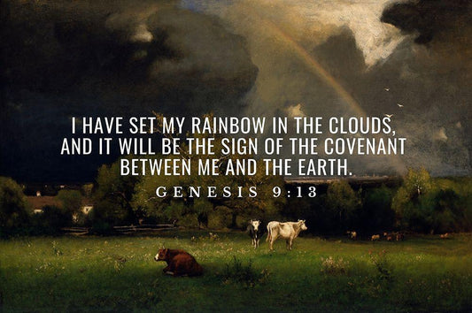 Bible Verse Quote Genesis 9:13, George Inness - The Rainbow White Modern Wood Framed Art Print with Double Matting by ArtsyQuotes
