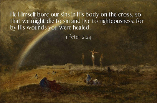 Bible Verse Quote 1 Peter 2:24, George Inness - The Triumph at Calvary White Modern Wood Framed Art Print with Double Matting by ArtsyQuotes