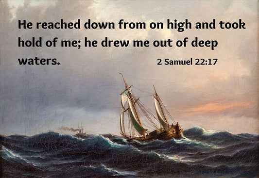 Bible Verse Quote 2 Samuel 22:17, Anton Melbye - A Ship in High Seas at Sunset White Modern Wood Framed Art Print with Double Matting by ArtsyQuotes